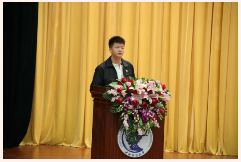 金融国际本科2022级辛天旭作为在校生代表分享了自己在中财大金融国际本科学习期间的收获和感悟。他感谢中财大金融学院为同学们提供的平台与机遇,鼓励学弟学妹们莫忘初心,坚持如一,“书山有路勤为径,学海无涯苦作舟”,努力把握雅思与专业课学习,跃马扬鞭奋向前,吃苦开拓,慎终如始。