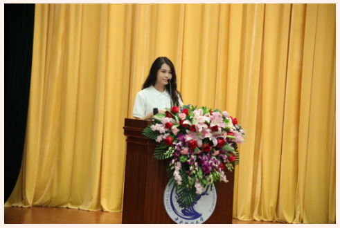 金融国际本科2023级吕宇祯作为新生代表发言。她从“凡是过往,皆为序章”“转变观念,走向社会”“以梦为马,不负韶华”三个篇章来传达心声。她与同学们共勉,以朝气蓬勃的姿态喊出要做财经报国的排头兵的口号,将坚持“忠诚、团结、求实、创新”的校训,培养创新、协调、沟通、独立思考的能力,珍惜学校与良师的宝贵资源,以终为始,勇攀高峰,用自律换来自由。