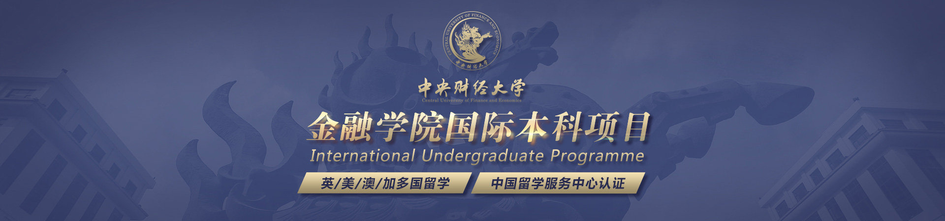 中央财经大学始建于1949年,是教育部直属、国家“双一流”建设、“211工程”建设和首批“985优势学科创新平台”项目建设高校。 中央财经大学金融学科于2001年被教育部评定为国家级重点学科,2007年再次获聘国家重点学科并支撑中央财经大学应用经济学科成为国家重点一级学科,2017年应用经济学被确定为国家双一流学科。 着经济全球化浪潮的快速推进,学校实施国际化战略,大力开展多形式、错层次的国际交流与合作,已与遍及世界五大洲的高校、政府机构、国际组织、跨国企业等190余家单位建立了密切的合作关系。 2017年,中国(教育部)留学服务中心与中央财经大学签署协议建立战略合作关系,开展金融学院国际本科项目。